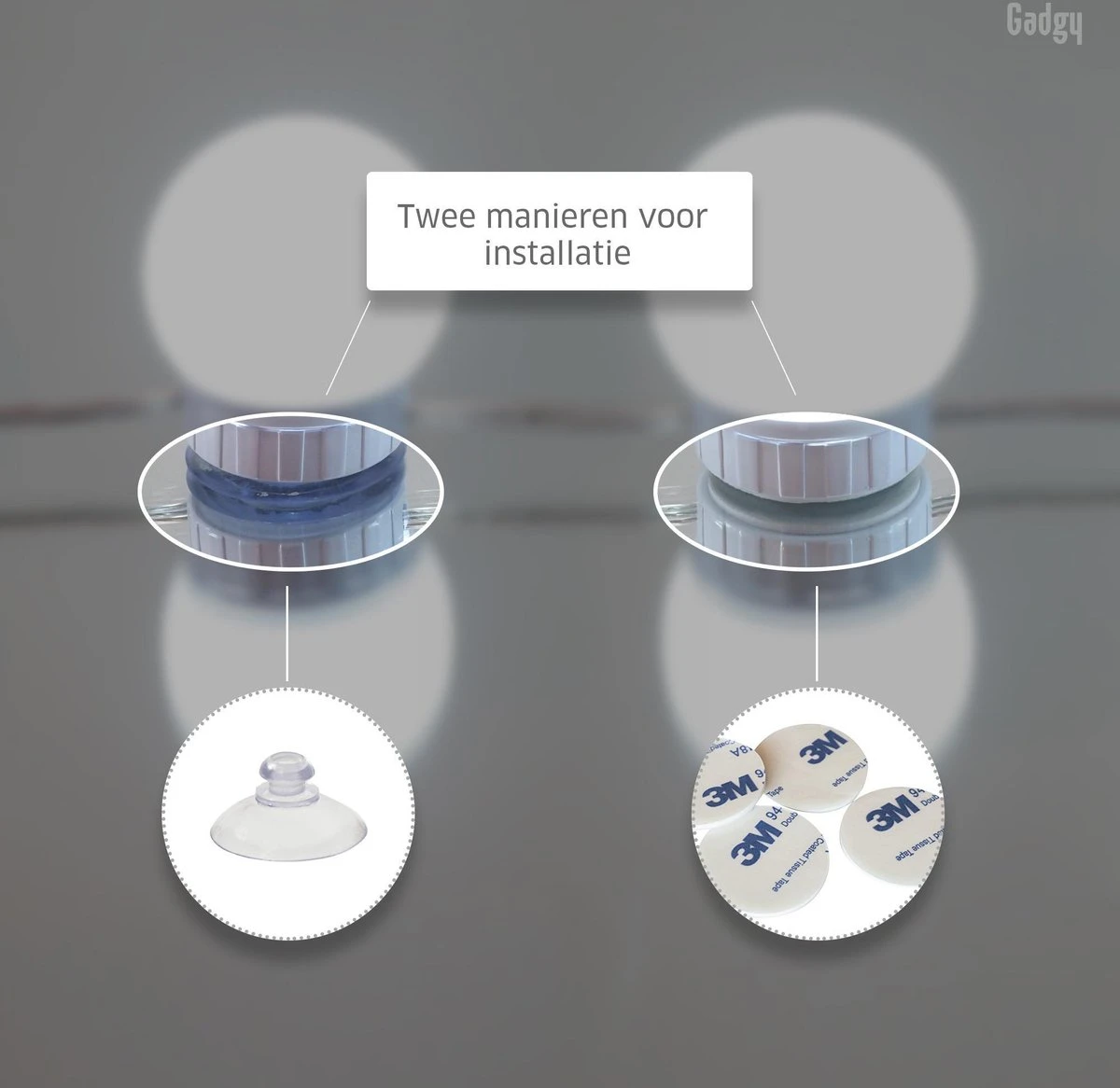 Montage op 2 manieren: Bevestig de lampen simpel met de zuignapjes of het verwijderbare 3M tape. Beide worden meegeleverd!